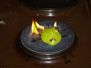 apple-figures, while the audience, i.e. the wall paper's pattern, never