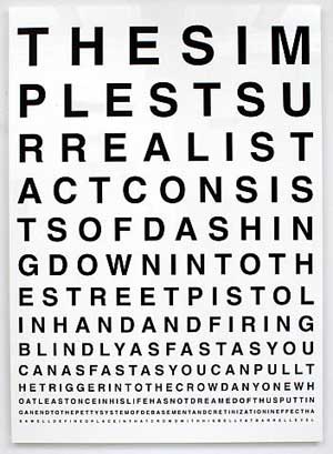 of an optometrist's eyechart appears alone on the wall. This evoked the