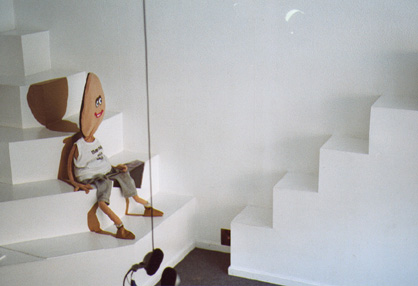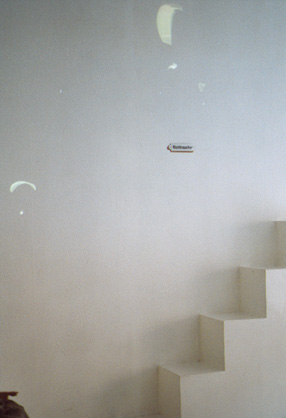 An der Wand schweben Fallschirmspringer im Negativ entlang.
